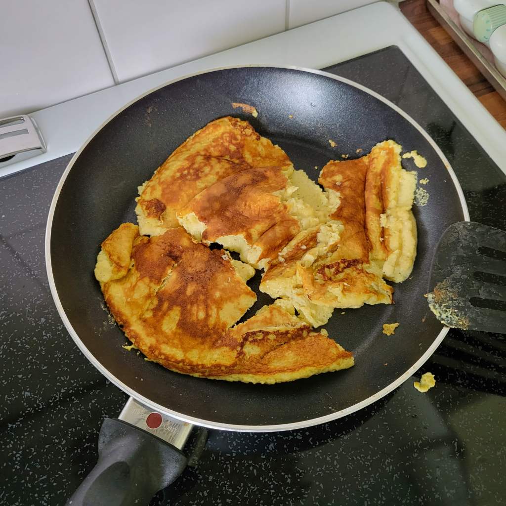 Jag packade på lunchrasten. Sen stekte jag en bananpannkaka. Som gick sönder när jag vände den.