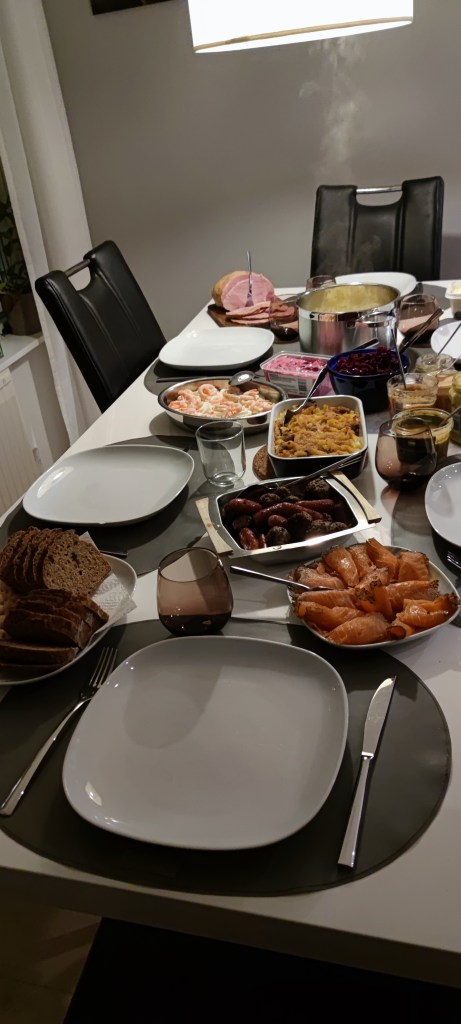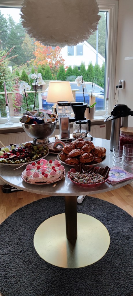 Det bjöds på brunch med en massa smarrigheter! Och trevligt! Sen hem igen och tillbaka till skrivbordet och löste av kollegan som hållit ställningarna när jag var iväg.