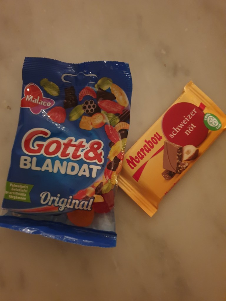 Så himla gott! Och Systeryster hade köpt lördagsgodis till mig! En minipåse gott och blandat och en minichokladkaka.