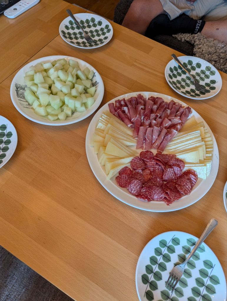 På kvällen var vi uppe hos Marja och Tommy och de bjöd på ost och chark. Mmmm!