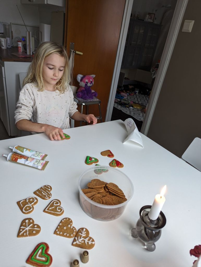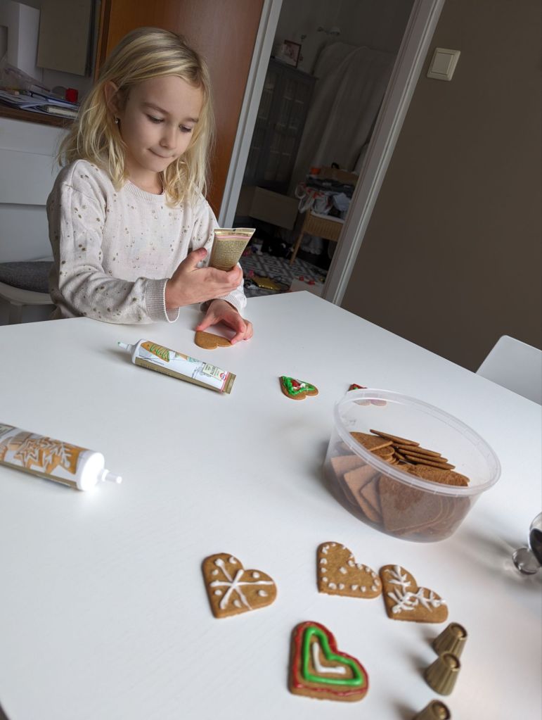 Att baka pepparkakor är ju rätt pilligt för barn. Så jag skippade den biten. Men däremot är det ju kul att sätta kristyr på dem!