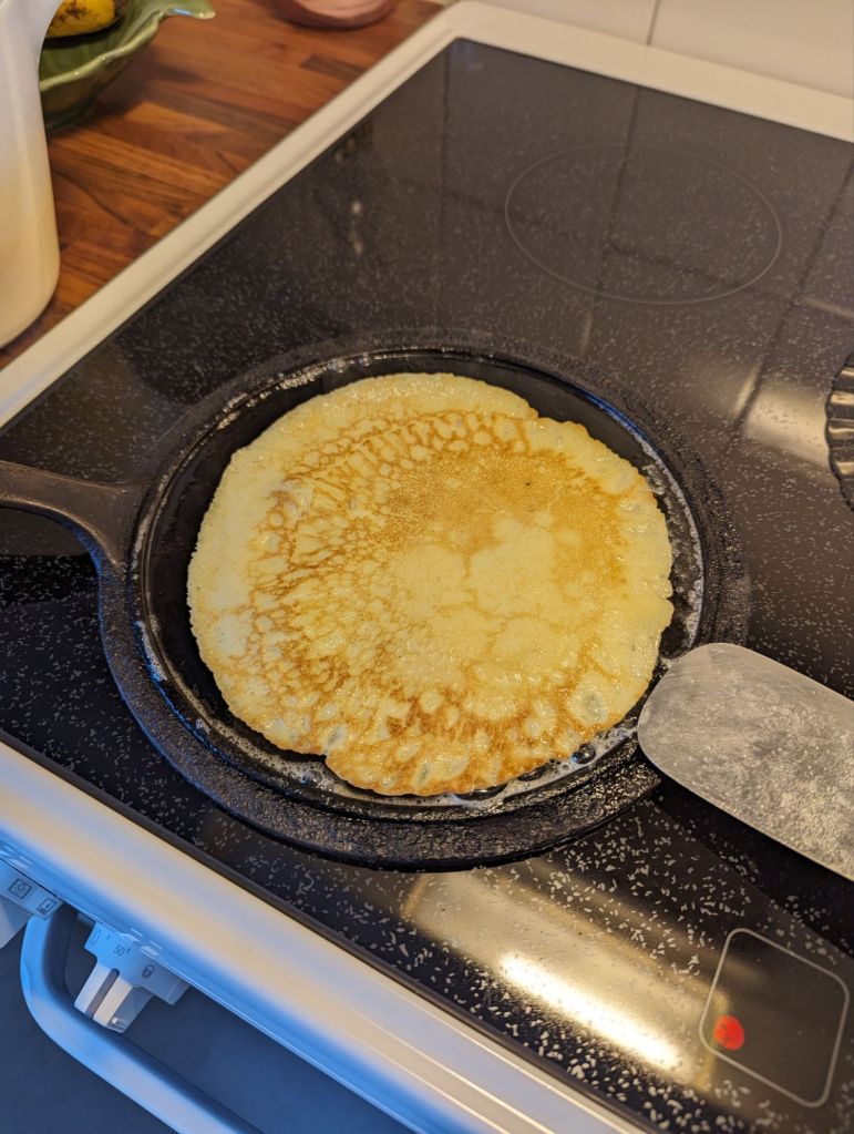 Och med tanke på att middagsmaten knappast behövde tillagas alls så tyckte jag det var helt okej att stå med pannkakslaggen ett tag.