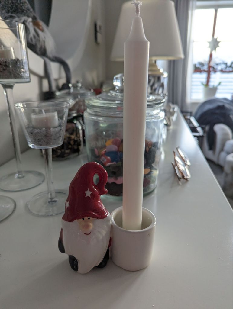 Senare kom Fastersfina med sin familj. Och då skulle så klart tomten komma. Och yours truly skulle vara tomte. Så jag och Bror gick ut i förrådet och klädde på mig utstyrseln. Bror gick in och jag skulle gå runt vid huset med ljuslykta och säcken med klappar. Tyvärr såg jag knappt. Och dessutom så halkade byxorna ner under kudden, som skulle vara en tjock mage, så byxorna var nere vid fotknölarna efter 3 steg. Oj då….