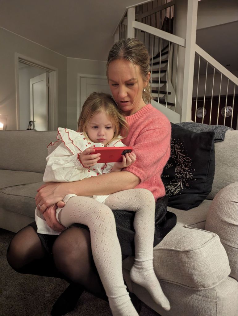 Svägerskan skickade ett foto på mig och Lotta när vi åt av den smarriga buffén.