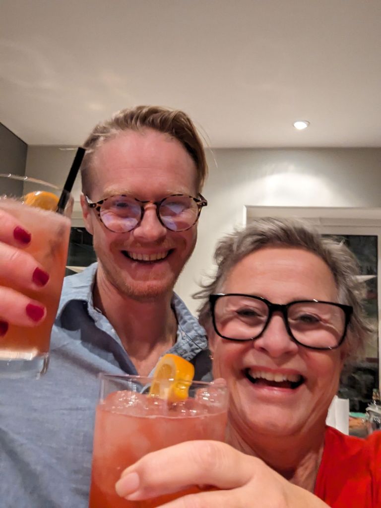 De bor så himla fint! När vi kom fick vi varsin Bellini och så åt vi krustader med fyllning och satt ute och babblade. Så trevligt!