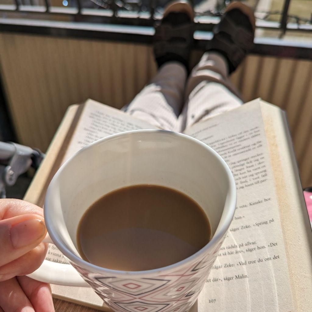Sen satte jag mig, under parasollet, på balkongen och läste ett tag.