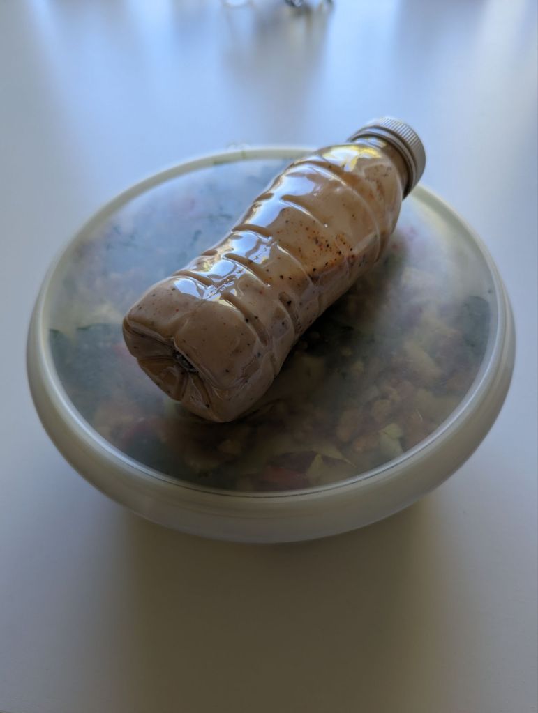 Igår knatade jag upp till centrum efter frukost och köpte kött och grönsaker bland annat. Sen hem och yxade till en sallad med valnötter och till det en fil- och majonnäsdressing. Med vitlök och kryddor i.