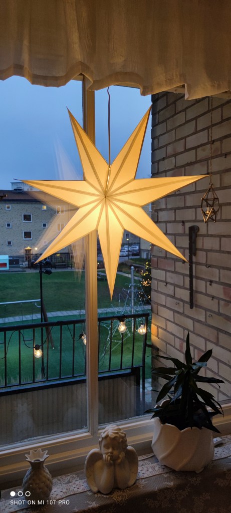 I år köpte jag en stjärna att hänga i vardagsrummet. Har haft adventsstake tidigare år, men kände för en större stjärna nu. Sagt och gjort!