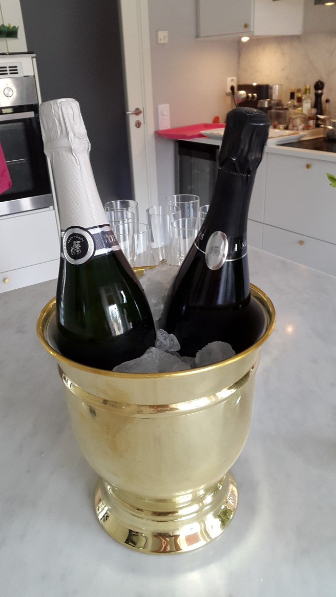När alla kom så drack vi lite skumpa medan syrran och jag fixade med våfflor och gucka.