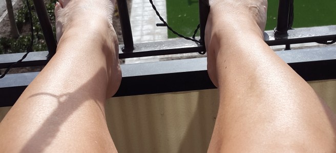 Här få ni tänka er en bild av mina bara ben på balkongräcket. Ni har ju sett det förr. Mailandet mellan mig och supporten fortsätter. ..