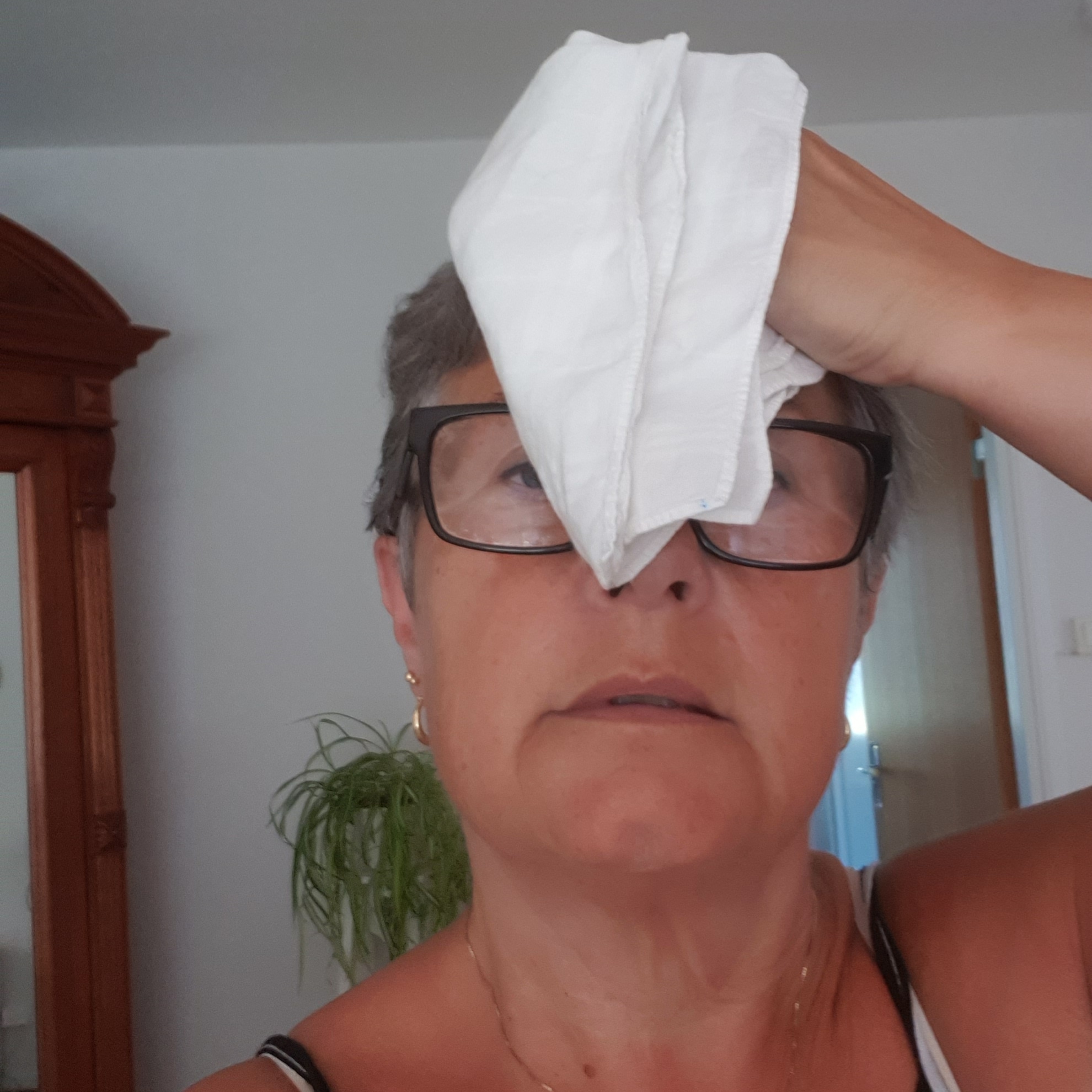 Tog med en näsduk när jag gick till optikern, som jag kunde torka av ansiktet ned. Jag svettas ju så mycket just i ansiktet! Känns så fräscht, märks ju knappt…
