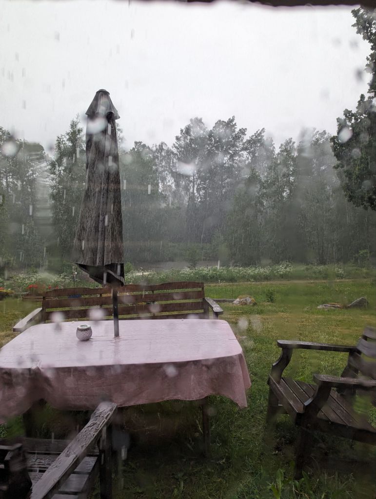 På lunchen satt jag på balkongen igen. Så varmt! Men härligt! När jag slutade jobba så var det mulet och åska och blixtar. Men bara lite regn. Så jag satt en stund ändå och läste på balkongen.