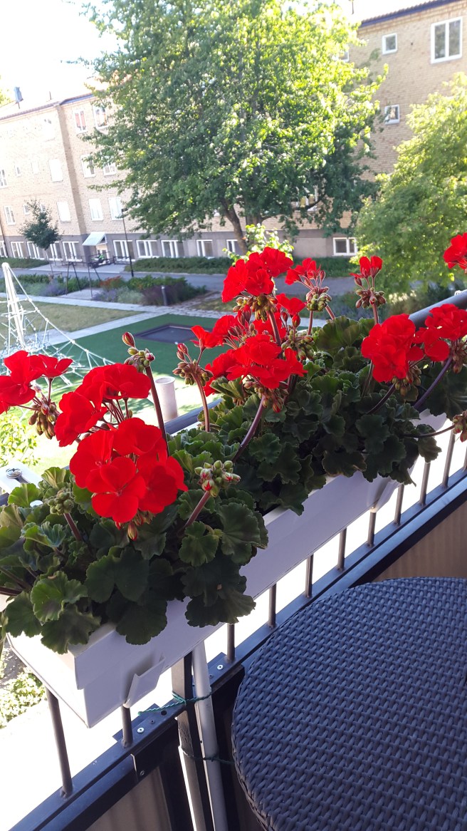 I vanlig ordning så var fönstret vidöppet i sovrummet i natt, men då det var helt vindstilla så hjälpte det inte ett smack! Så jag satte fläkten i fönstret så den fick blåsa in den i alla fall något svalare luften. Och efter ett tag blev det faktiskt svalare i sovrummet! Funderade då på om jag skulle gå upp och stänga av den, men tänkte att då blir det kanske varmt igen. Så den fick jobba på hela natten.