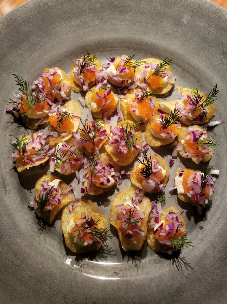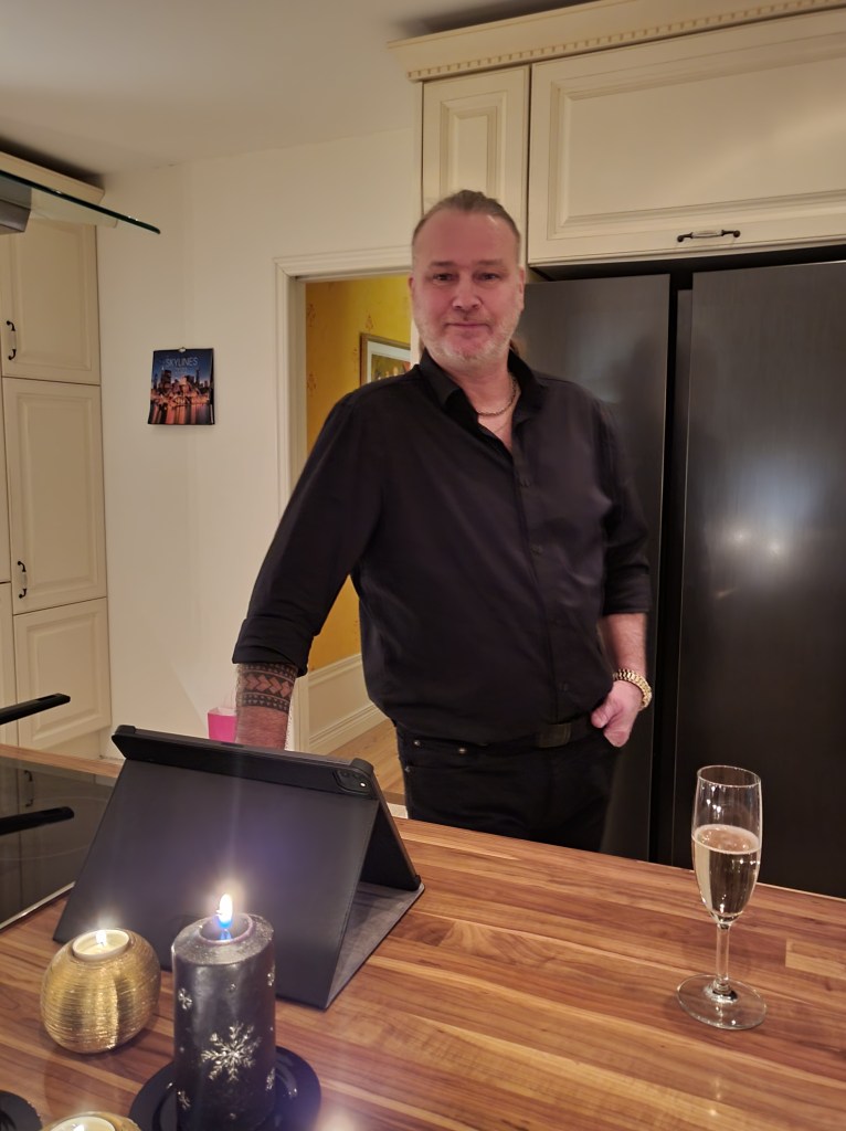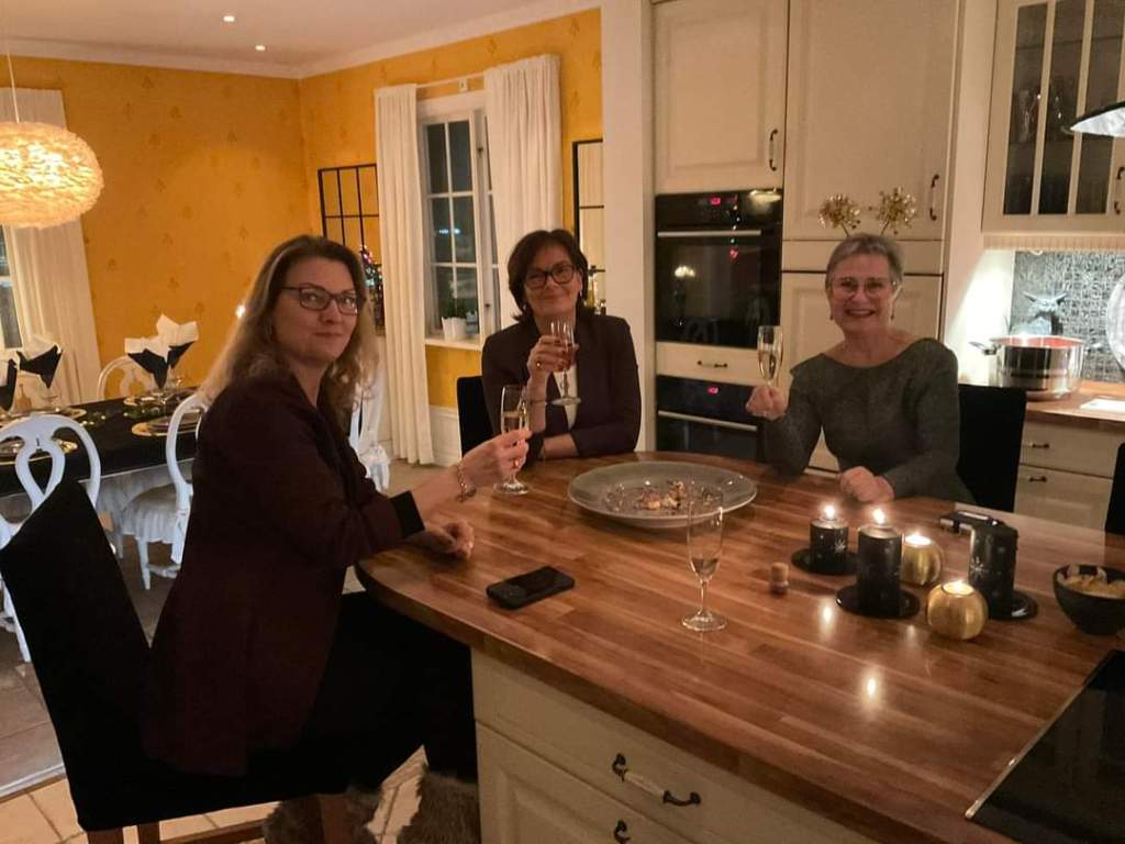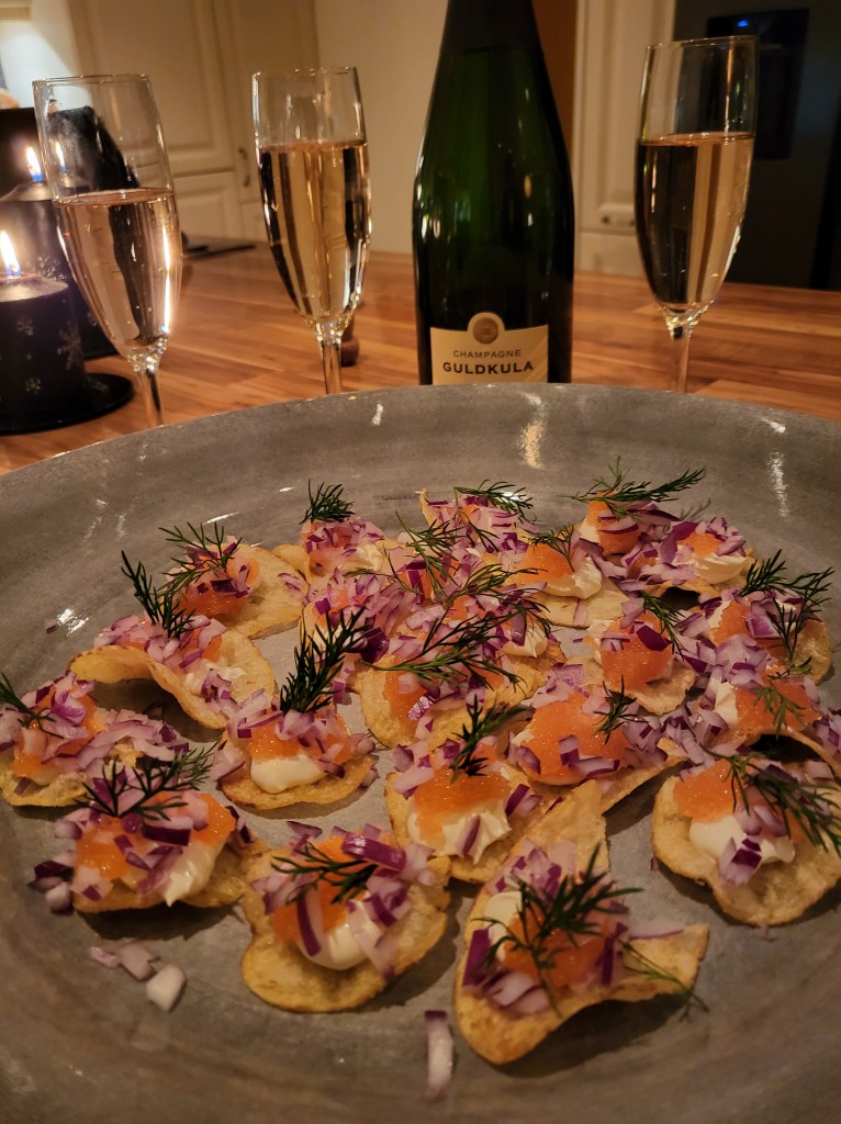 Även Jajas mamma och svägerska Eva kom. Så trevligt! Eva gjorde smarrigt snacks till champagnen vi startade med.