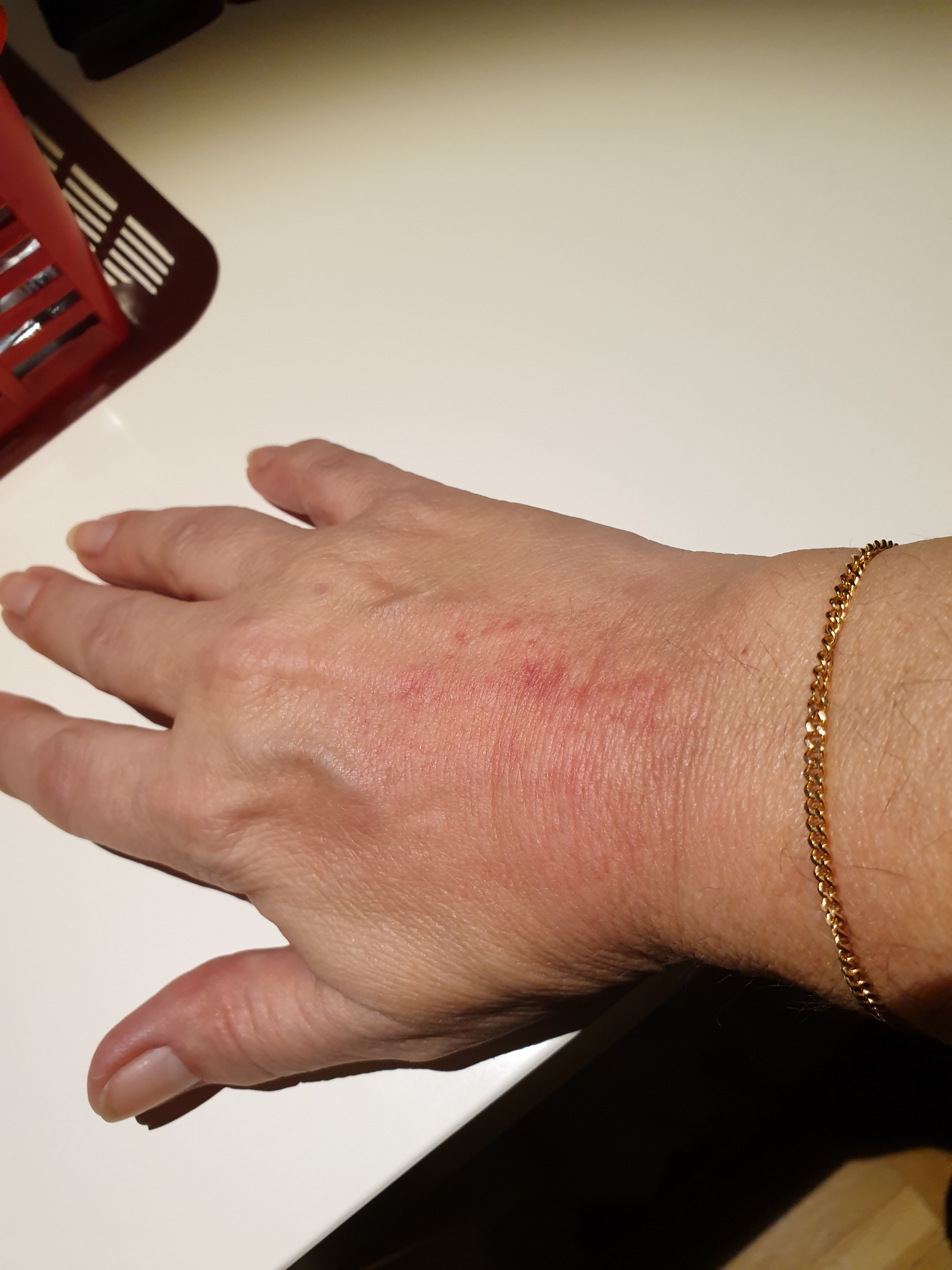 Ooops! Idag har det mesta bleknat bort, syns bara lite. Men så konstigt med sån klåda, plötsligt!?