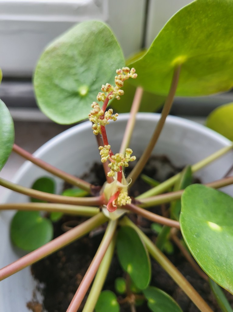 Elefantörats blomma har vecklat ut sig och blivit en liten stängel, liksom.