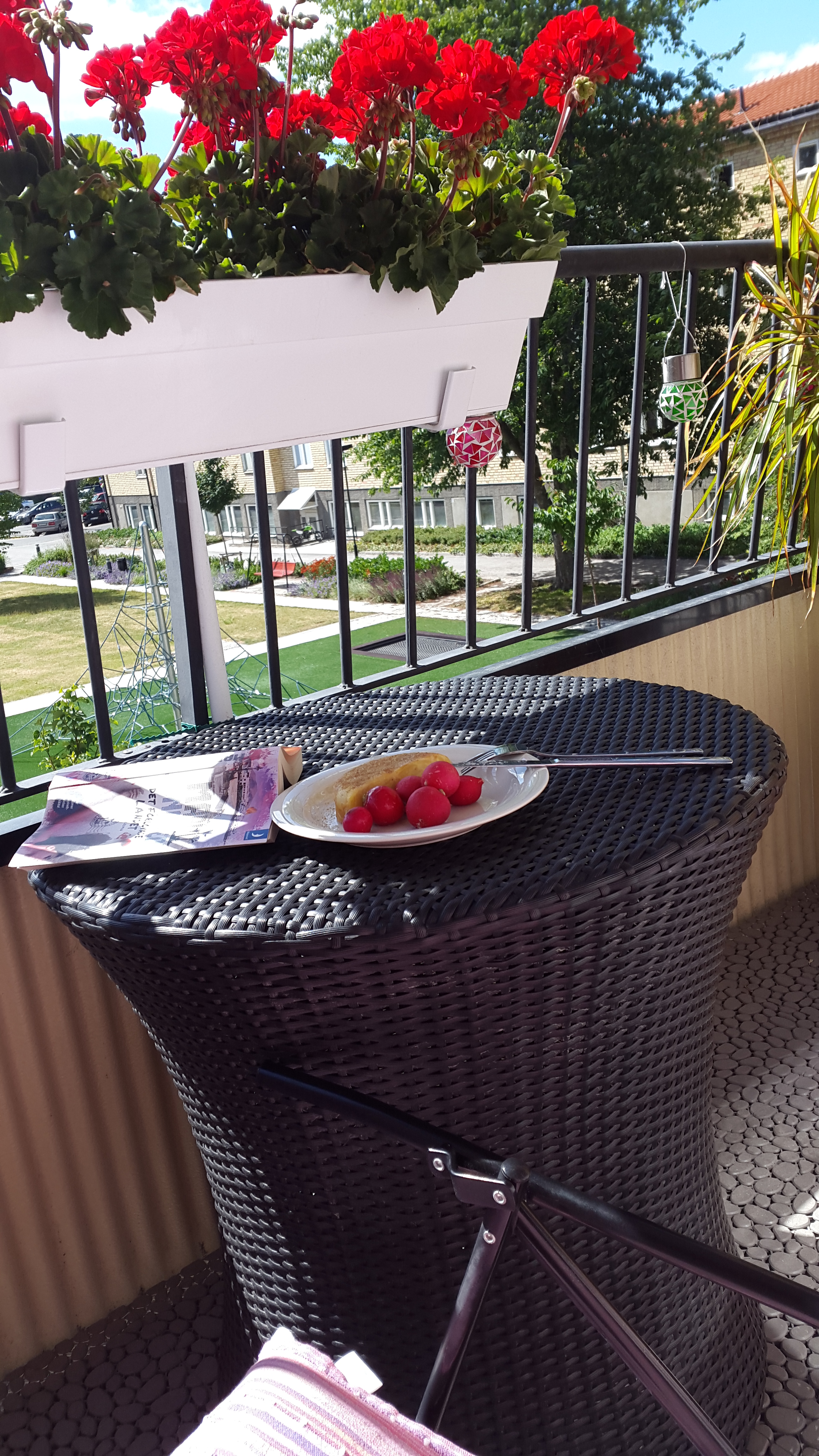 Blomflugorna däremot, där är inget löst. Jag har ihjäl fler om dagen genom att slå ihjäl dem som är runt ansiktet på mig än det drunknar i mina burkar. För de verkar inte alls lockas av innehållet i dem. Så det enda resultatet av burkarna är att jag känner en vinägerlukt lite här och där här hemma…