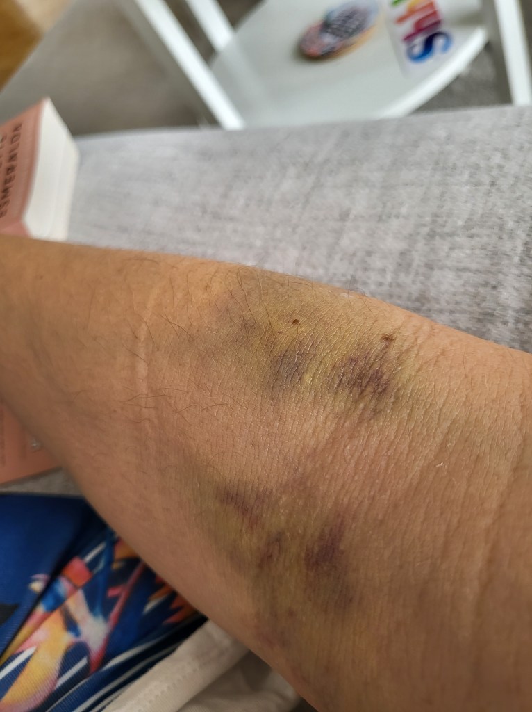 Men natten…. Slumrat stundtals men haft så nedra ont. Halvsuttit, med båda kuddarna bakom mig. Var upp och hämtade soffkuddar för att palla upp höger arm. Flera gånger, när jag slumrat till och rört på mig, så har jag fått så ont att jag nästan skrikit. Det hugger till, liksom, i nacken, skuldran och hela armen.