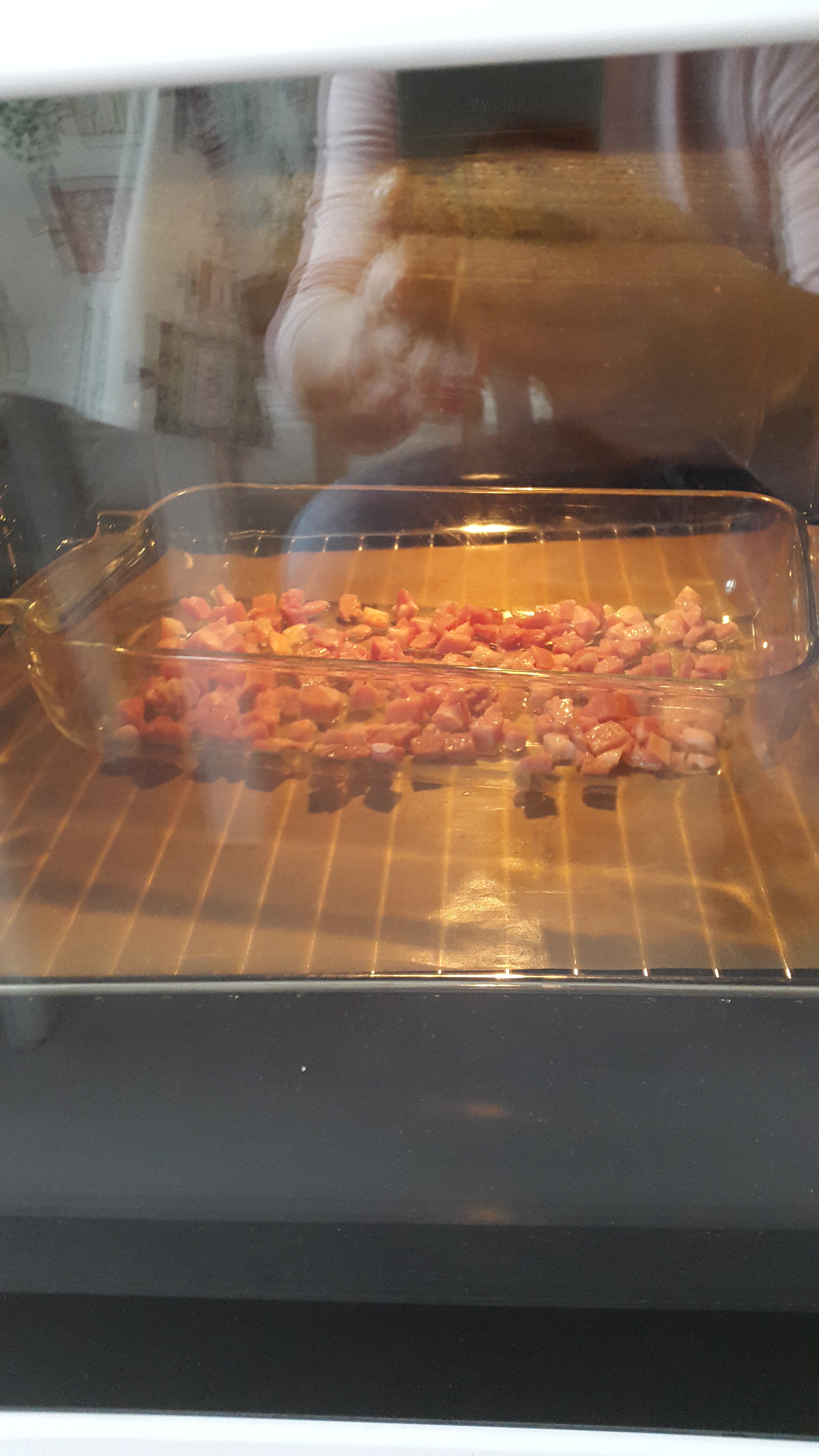 Jag brukar av någon anledning jämt köpa skivat bacon, men idag köpte jag tärnat.