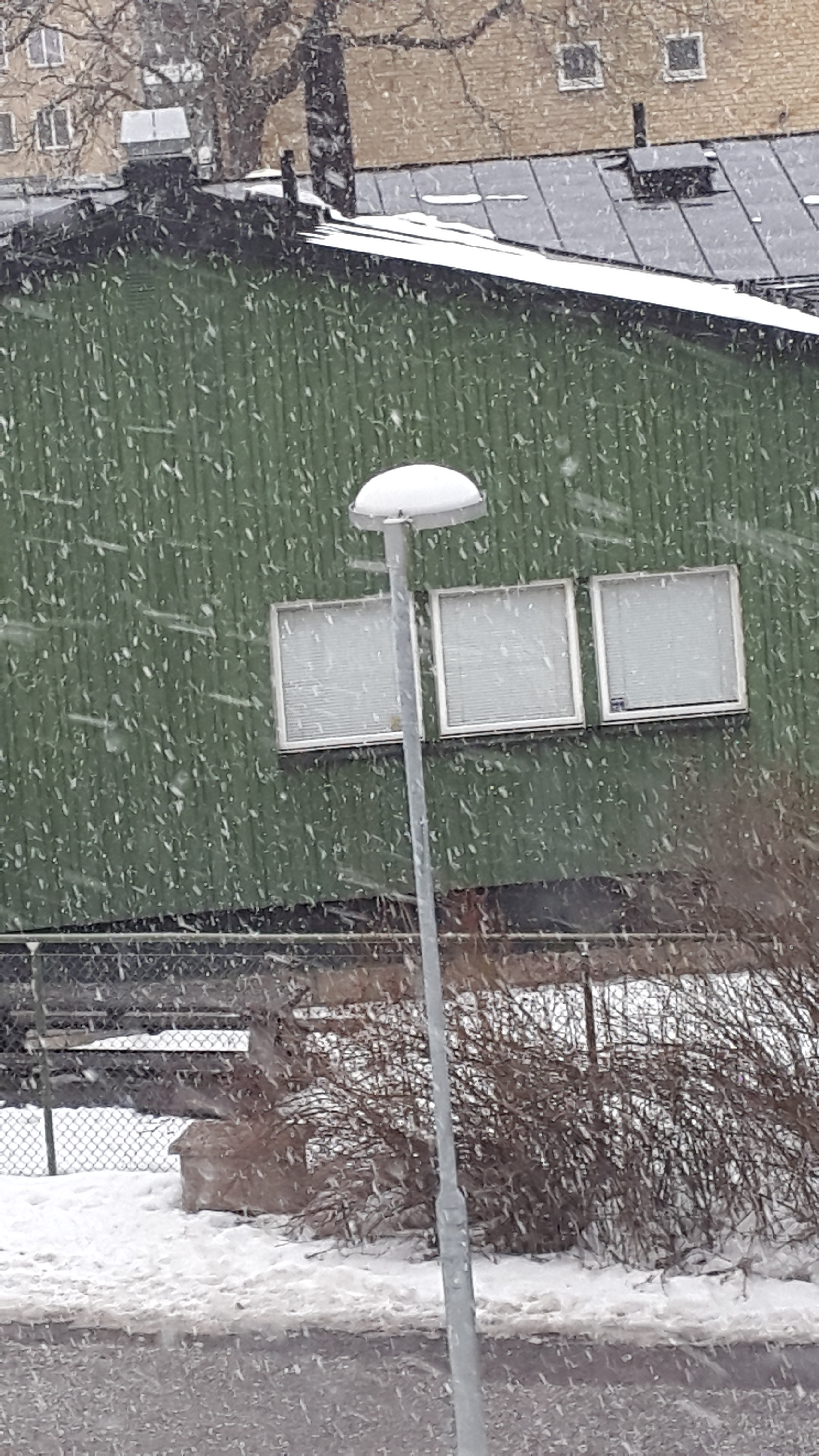 Det är fortfarande plusgrader,men nu vräker snön ner…