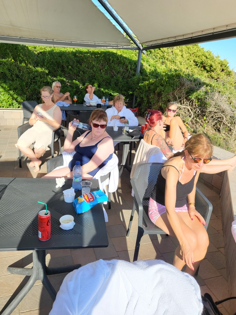 Alltså, vilken vecka vi har haft! Vi var alla överens om att inte en enda minut var bortslösad på nåt vi ångrade. Vi har skrattat, solat, badat, ätit gott, druckit sangria och haft det BRA!! Varvat mellan 2 olika stränder, och i havet var det svalt. Jag trodde det skulle vara varmt, men enligt Systeryster och Svågern som varit här förut är det alltid svalt. Och det var riktigt skönt att svalka sig i klart och krispigt vatten när man var supervarm.