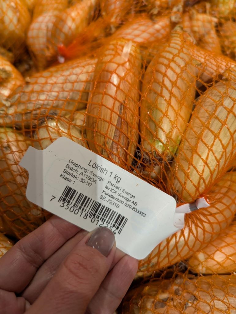 Efter jobbet hastade jag iväg. Igen. Men inte för att träna! Jag mötte Nettis på MOS och vi köpte present till Kritte, Toboys moster som fyller 50. Vi hittade det vi ville ha, och sen kollade vi runt lite bara. Var in på Ica och såg annorlunda lök, typ.