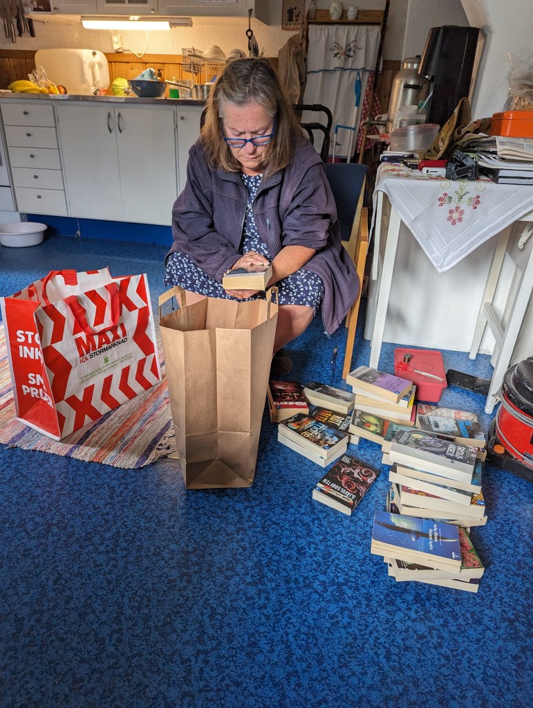 Jag knatade upp till centrum och var bl.a. på Clas Ohlson och köpte prylar att ställa skor på som sparar plats. Jag ska visa när jag satt dem på plats. Så långt kom jag inte igår. 😉 De är så smarta, man ställer skorna på varandra, så fler får plats. Så nu kan jag köpa fler skor! Hehe!!