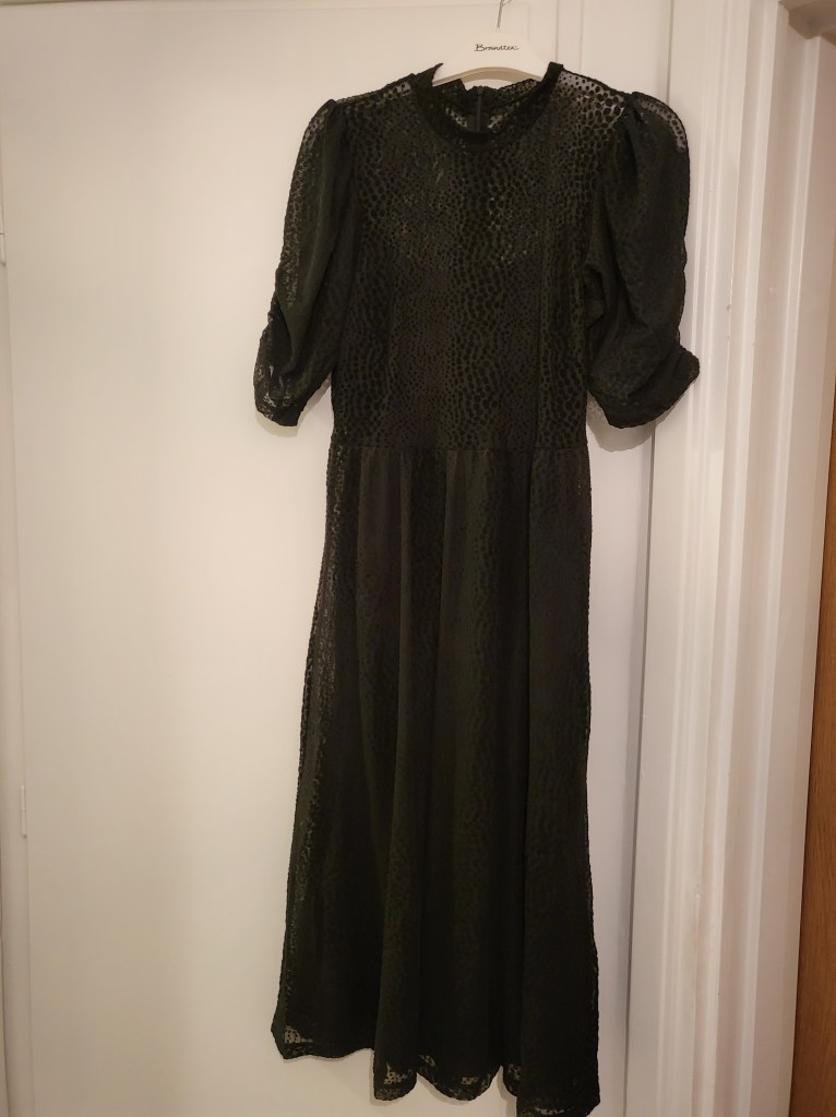 Ärmarna och högts upp är genomskinligt tyg. Jättefint! Den fick alltså följa med hem!