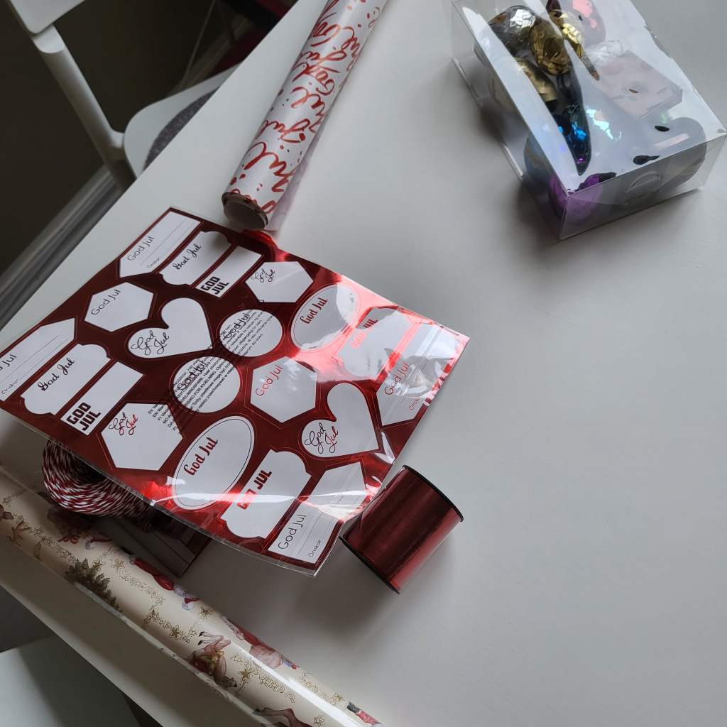 Igår tog jag fram inslagspapper och snören för att slå in julklappar.