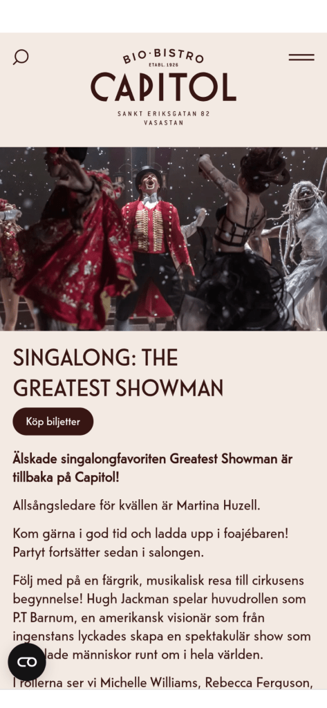 Det är så mysigt att se film på Capitol där man får äta och dricka inne i salongen.