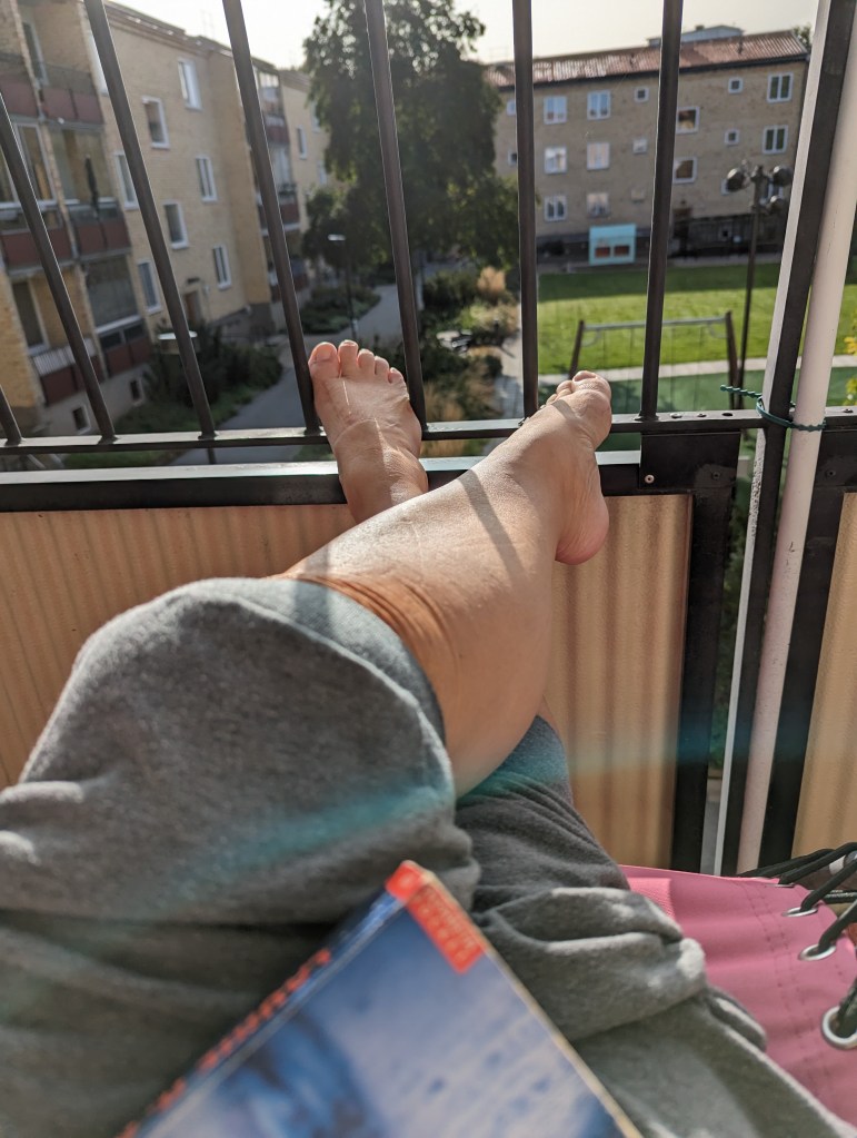 Igår var det sol och varmt hela dagen! Jag satt på balkongen även efter att solen inte nådde den längre, för det var ändå varmt och skönt. Underbart!