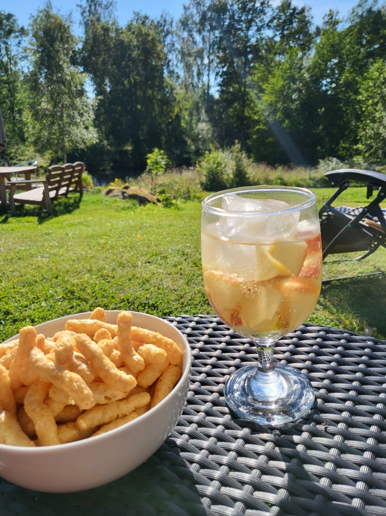 Så mysigt att ta ett glas iskallt vin, babbla med M och sitta i solen!