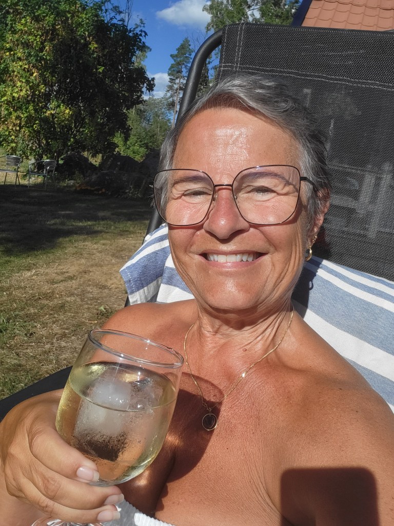 M och jag drack ett glas vin på dagen, och bara njöt av väder, ledighet och trevligt sällskap!