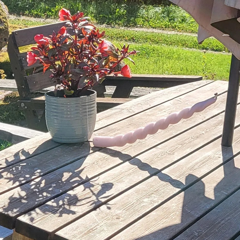 På Ö&B köpte vi ett ljus, som en fackla. Men i bagageluckan blev det tydligen varmt när vi fick massage…