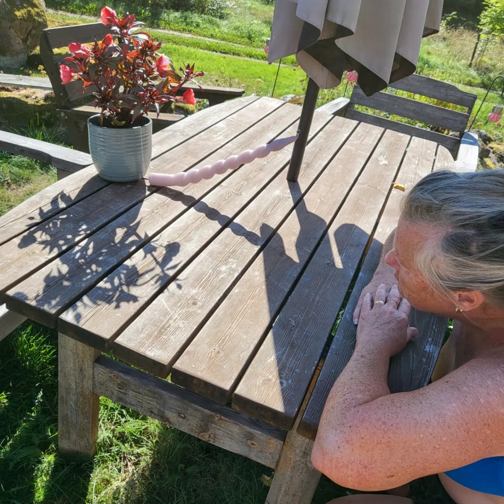 Så M tänkte att det ju bör böja sig tillbaks igen om det är i solen. Hon lyckades rigga upp det med hjälp av Lyckliga Lotta.
