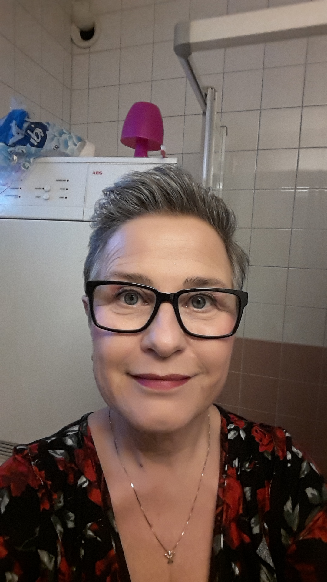 Tar så klart av mig brillorna och så har jag en förstoringsspegel när jag målar mig. Ändå ser jag inte att jag smetat maskara på halva ögonlocket förän jag fått på brillorna igen. Fniss!!