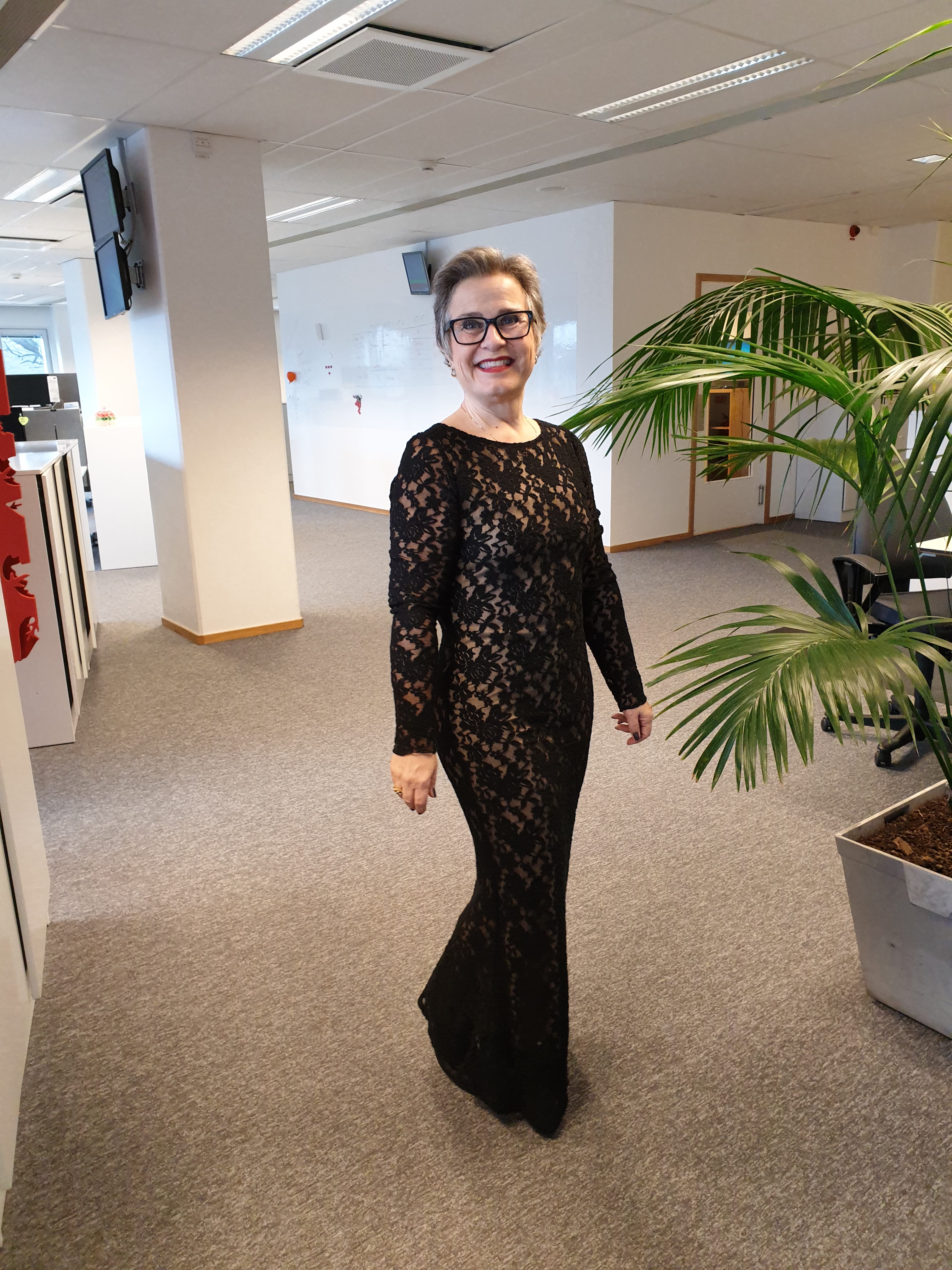 Igår trippade jag iväg till jobbet i klackskor och klänning. Klänningen har slitsar på båda sidorna, så man får se upp lite när man sitter. Annars blir man tant Raffa. Eller inte….