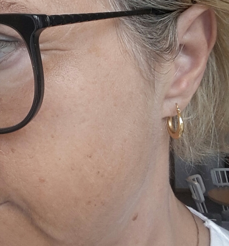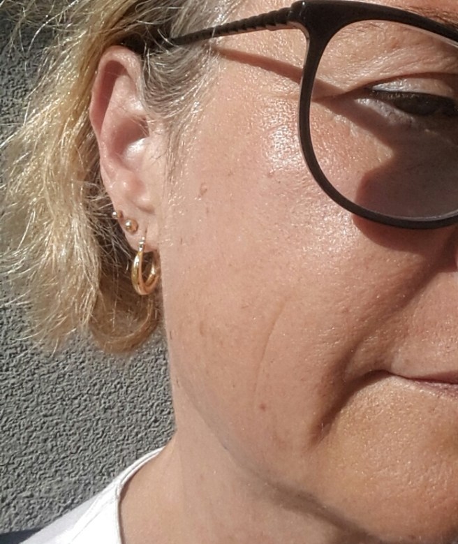 Nu är jag så slät och fin, och inte helt luden längre! När jag just satt mig så frågade hon om det var läppen och hakan jag ville tråda, och samtidigt som jag just svarade så tittade hon på mitt ansikte och sa, nej, hela ansiktet, ja. Du har mycket hår här vid polisonger. Och så tog hon även pannan.